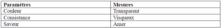 Tableau 10 : Propriétés sensorielles du gel d’Aloe arborescens