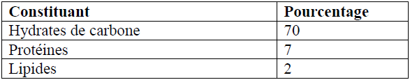Le tableau suivant donne le pourcentage de quelques constituants des feuilles d’Aloe arborescens.