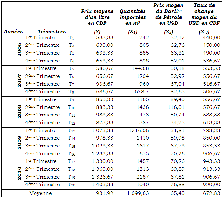 Tableau 8 Les statistiques de Base d’analyse du prix de l’essence