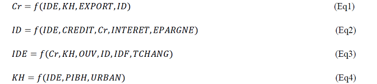 Afin d’éviter le risque d’endogénéité entre variables explicatives et pour tenir compte des effets dynamiques et les canaux par lesquels interagissent les IDE et la croissance, un modèle structurel à équations simultanées appliquées sur données de panel a été développé.