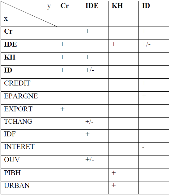 Le signe attendu des différentes variables :