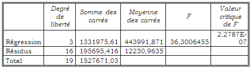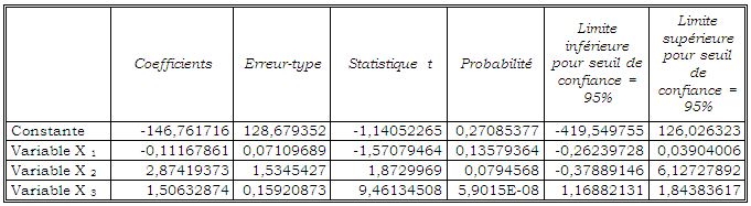 Source : Nos Calculs sur Ms Excel dans l’Utilitaire d’Analyse-Régression