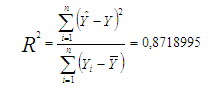 Ce test nous permet de vérifier si l’explication du prix par les variables quantités importées d’essence, prix du baril de pétrole et taux de change du dollar américain est globalement valide. Il importe d’abord de déterminer le degré d’explication à l’aide de la formule :