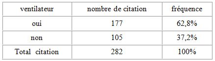 L’accès à des ventilateurs à domicile est loin d’être marginal : deux répondants sur trois ont rapporté en posséder au moins un. (Tableau 17).