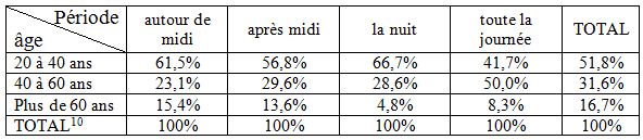 En effet, durant les nuits de chaleur accablantes, le taux de personnes âgés de moins de 40 ans qui se rafraichissaient à l’aide des ventilateurs est environ le double que celui chez les personnes plus âgées. Par contre, les plus jeunes sont plus sensibles et cherche à se rafraichir aux moments de la journée.
