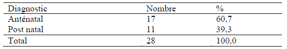 Le tableau ci-dessous montre le nombre d’enfants malformés dont le diagnostic a été anténatal