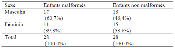 Dans le groupe des nouveau-nés malformés les garçons représentent 60,7% alors qu’ils ne