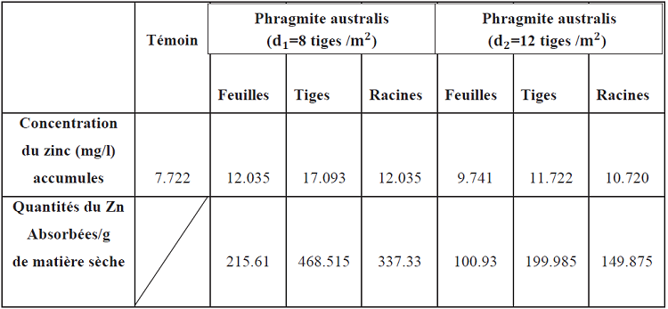 II.4.1. L’effet des Phragmites Australis sur l’accumulation du zinc