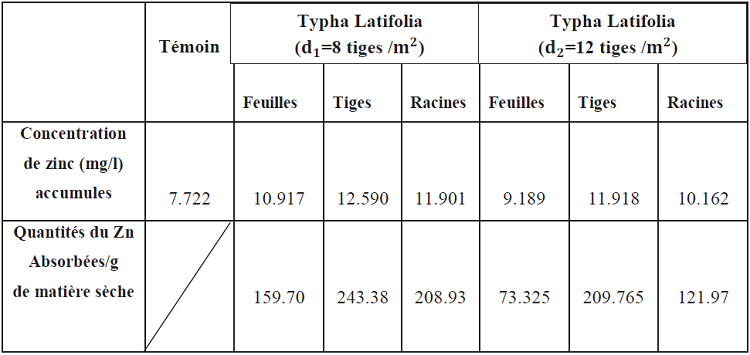 II.4.1. L’effet du Typha Latifolia sur l’accumulation du zinc
