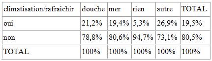 Tableau 20: les modes de rafraichissement influencé par la climatisation