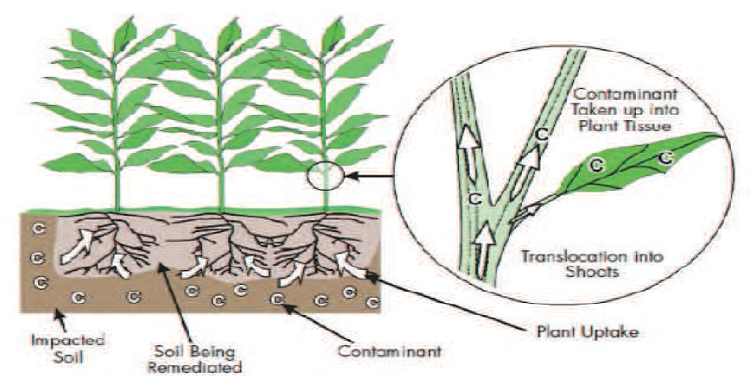 Utilisation de plantes qui absorbent les métaux lourds dans les sols par les racines, puis transfèrent et accumulent ceux-ci dans leurs parties récoltables (feuilles, tiges et racines).