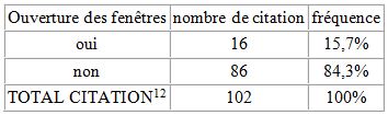 Tableau 21 : proportion des personnes ouvrent les fenêtres lors d’une vague de chaleur.