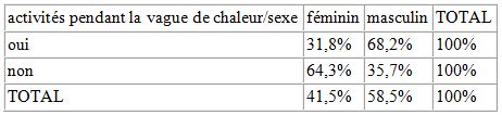 Tableau 26: activités réalisées durant les vagues de chaleur selon le sexe.