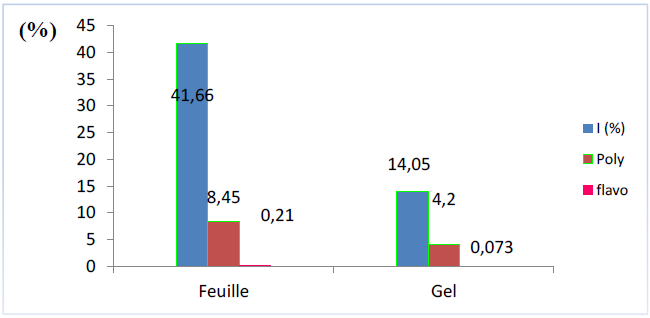 Les résultats de pourcentage d’inhibition du radical DPPH des extraits éthanoliques du gel et feuilles sont significativement déférents (test student) (P < 0,05).