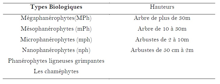 types biologiques ont été définis selon le système de Raunkiaer (1934). Les