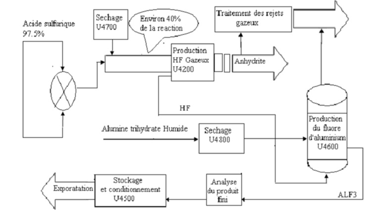 L’état des matières primaires importées, Alumine et spath fluor, sont humides ce qui nécessite donc une opération de séchage avant de procéder les différentes étapes de fabrication. Ces étapes sont identiques pour l’unité de séchage Alumine et l’unité de séchage spath, et qui nécessite une alimentation en gaz.