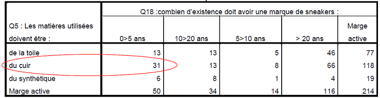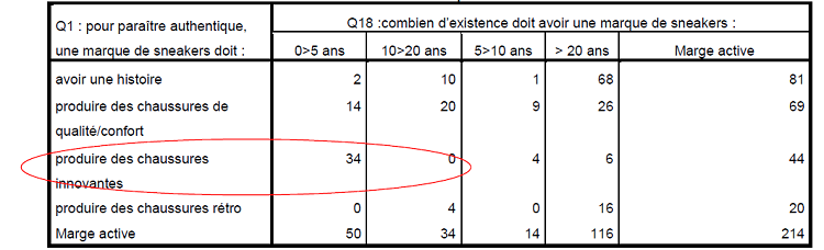 On constate que 68 % des répondants 0 à 5 ans répondent « produire des chaussures innovantes » comme élément d’authenticité. Rien d’étonnant qu’il n’ait pas répondu « avoir une histoire » comme les plus de 20 ans d’existence étant donné que la marque nouvellement créée à une histoire très courte.