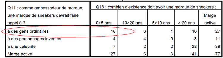 On peut donc conclure l’hypothèse 7 en affirmant qu’une marque de moins de 5 ans d’existence devrait utiliser un ambassadeur de marque et que celui-ci devrait-être une personne ordinaire entre 40 et 50 ans.