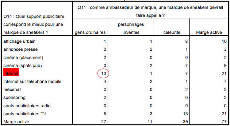 Pour les hypothèses 6 et 7, on peut faire une analyse croisée entre la question 11 et la question 14 pour déterminer quel support publicitaire est le plus approprié pour un ambassadeur de marque.