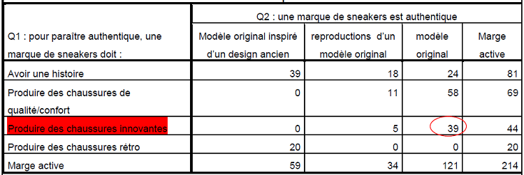 On constate que 39 des 44 répondants « produire des chaussures innovantes » ont répondu que les chaussures doivent être un modèle original loin devant les reproductions d’un modèle original (5) et aucun n’a répondu un modèle original inspiré d’un design ancien.
