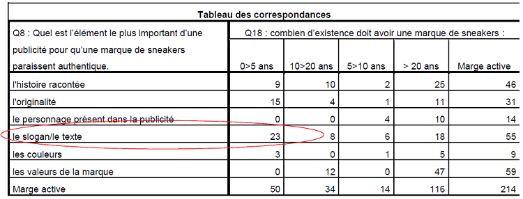 On peut répondre à l’hypothèse 6, en affirmant qu’une marque nouvellement créée doit insister sur le slogan et le texte dans ses publicités en y indiquant des éléments d’authenticité alors qu’une marque ayant plus de 20 ans d’existence doit insister sur les valeurs de la marque et l’histoire racontée dans les publicités.