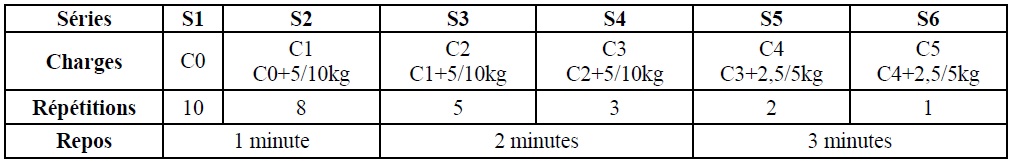 Chaque patient passe un test de FMV au niveau des membres inférieurs (MI) via la chaise à quadriceps et au niveau des membres supérieurs (MS) avec les tubes élastiques.