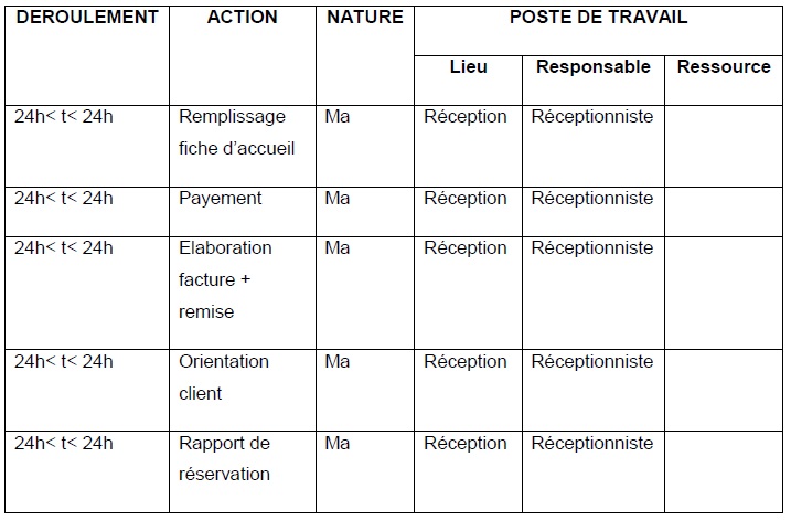 III.1.6 TABLEAU DES PROCEDURES FONCTIONNELLES admin 13 ans ago 1. PROCESSUS D’ACCUEILLE 2. PROCESSUS DE RESERVATION Page suivante : III.2 LE MODELE ORGANISATIONNEL DE TRAITEMENTRetour au menu : CONCEPTION D’UN SYSTEME INFORMATISE DE RESERVATION DES CHAMBRES DANS UN HOTEL : Cas de PEACE HOTEL/ Goma