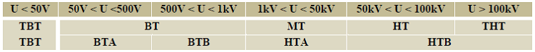 Figure 3.14 : répartition de différents niveaux de tension sur un réseau électrique norme UTE C 18 18-510