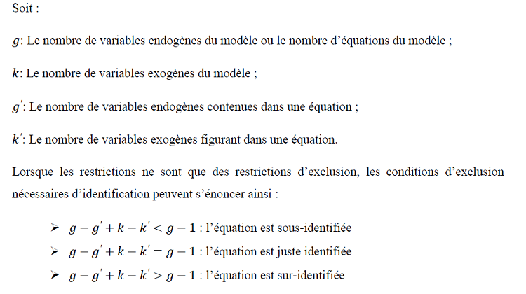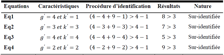 Tableau n°3 : Etude des conditions d’identification du modèle
