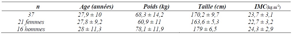 Tableau 4. Caractéristiques anthropométriques du groupe sain. (M ± SD)