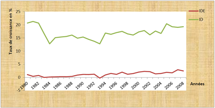 Graphique n°4 : Investissement direct étranger et investissement domestique en UEMOA, 1980-2008