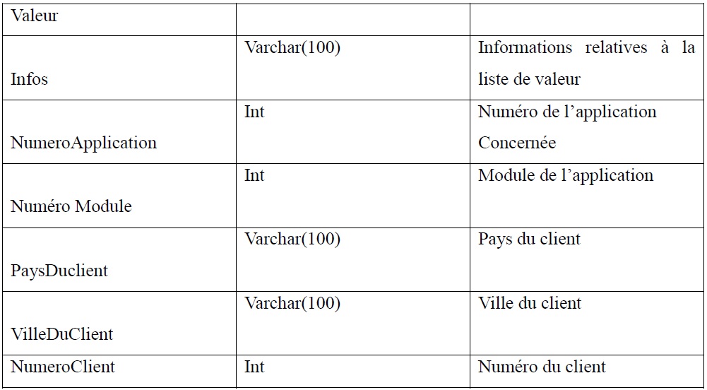 Figure III.5.2.1.6 : Description de la table « ListeDeValeurs »