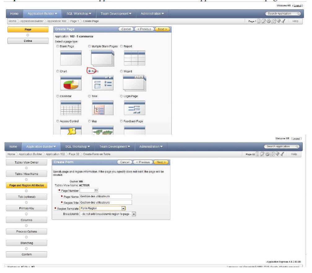 Retour au menu : Mise en place d’une plateforme de commerce électronique avec l’outil d’oracle (Oracle Application Express)
