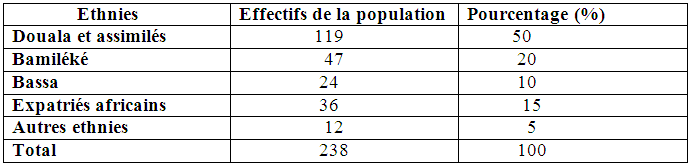 Tableau n°2 : Effectifs et pourcentage des ethnies représentées à Youpwe
