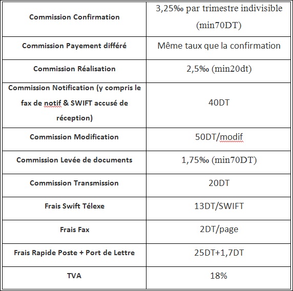 → Si le client autre que BIAT on mentionne avec la transcription de la L/C que notre confirmation est subordonnée au paiement de nos frais et commissions
