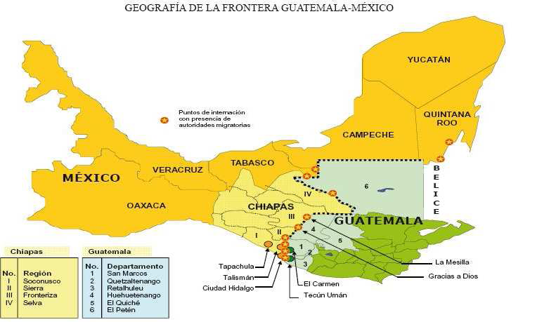 Dans le but de limiter les migrations de nombreux barrages militaires et des contrôles des forces de l’ordre, toujours plus nombreux, ce sont développés à la frontière sud du pays et à différents embranchements des routes nationales. Cependant, la frontière sud du Mexique reste poreuse. Il existe de nombreux points de passage permettent de se rendre du Guatemala au Mexique, aussi bien officiels qu’officieux.