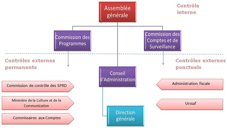En France des efforts ont été fait en matière de transparence, ainsi la SACEM publie sur son site internet notamment la répartition des droits collectés. En 2012 pour chaque euro collecté 15,4 centimes sont dévolus à la gestion et 84,6 centimes sont reversés aux créateurs et éditeurs(17). Depuis l’année 2000 la SACEM subit un contrôle interne et un contrôle par la Commission de contrôle des sociétés de perception et de répartition des droits qui est une émanation de la Cour des comptes laquelle publie tous les ans un rapport sur son site. On peut voir sur ce schéma de quelle manière la SACEM est contrôlé :