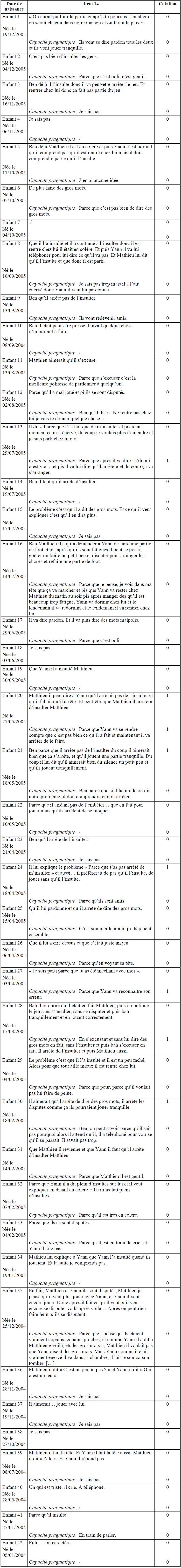 Nous avons rencontré des difficultés dans la cotation de cet item car les exemples de cotation se ressemblent et sont ambigus. La notion d’amitié est demandée dans les deux réponses pour obtenir la note de 1. Cependant, dans l’énoncé et les questions, la notion d’ami n’apparait pas. Nous avons donc trouvé cela normal d’attribuer la note de 1 aux enfants qui n’en font pas référence mais qui expliquent la situation à Yann.