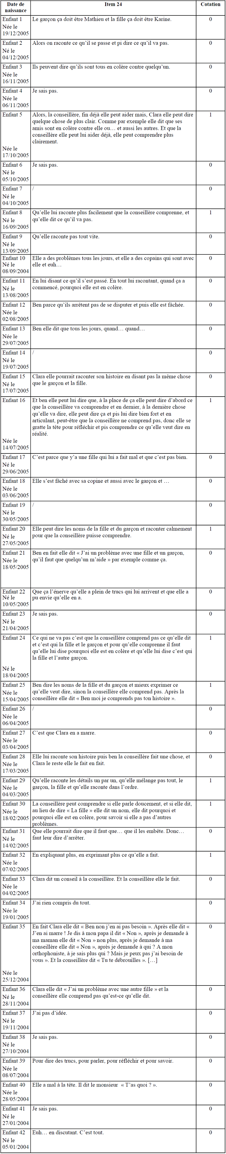 La majorité des enfants n’ont pas su répondre correctement à la question, car ils n’ont pas compris que l’histoire de Clara n’est pas claire et qu’elle nécessite une clarification. Cela doit s’expliquer par le fait que cet item est compliqué pour les enfants de cet âge.