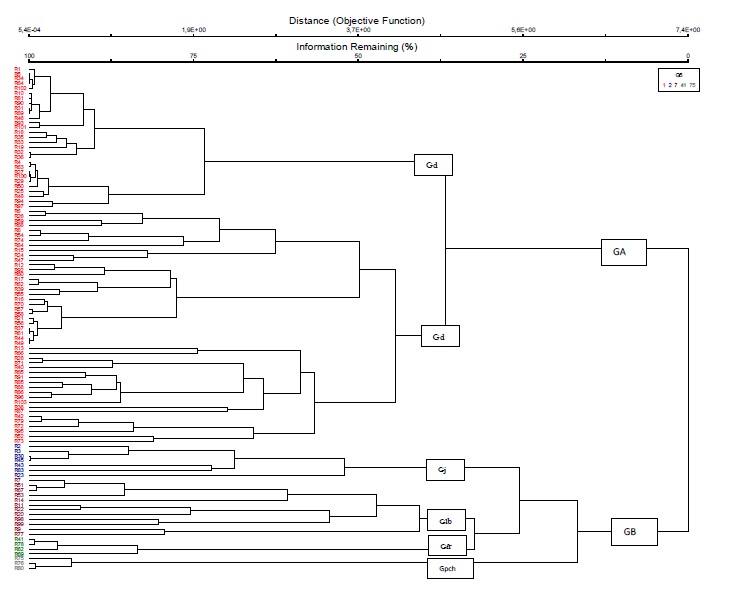 MEASURE=SORENSEN (BRAY-CUTIES), GROUP LINKAGE METHOD=FLEXIBLE BETA)