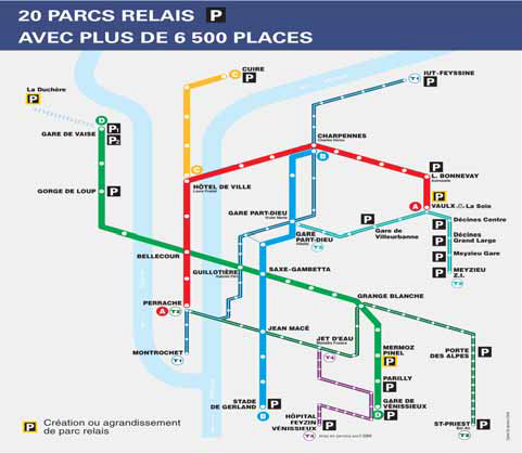 Parcs relais des transports en commun du Grand Lyon (source : www.tcl.fr) :