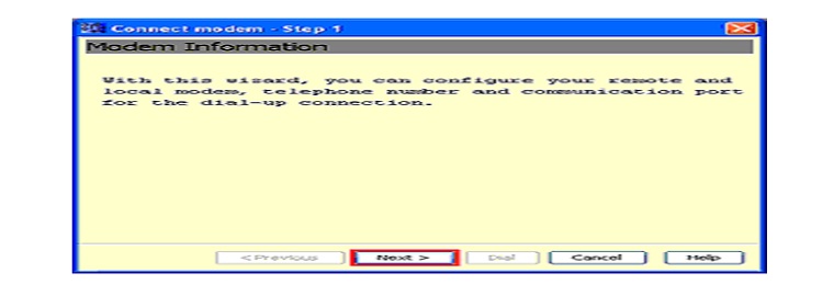 Cette description présente une première de configuration nécessaire pour les modems et la liaison téléphonique. D’autres informations sur ce thème se trouvent dans l’aide « Outils => Connecter modem ».