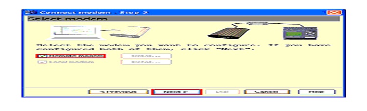 • Activons l’icone «Modem distant » pour la configuration du modem décentralisé, puis cliquons sur le bouton « Suivant ».