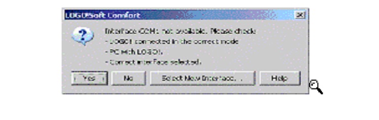 Dans cette fenêtre d’information du logiciel LOGO! Soft Comfort vous êtes informé du non disponibilité de l’interface. Et donc veuillons fermer l’autre application et assure que l’interface COM que nous avons définie dans le logiciel LOGO Soft Comfort est celle que nous avons connectée au module logique en utilisant le câble PC. Si nous avons définie la mauvaise interface, nous obtiendrons cette fenêtre d’erreur :