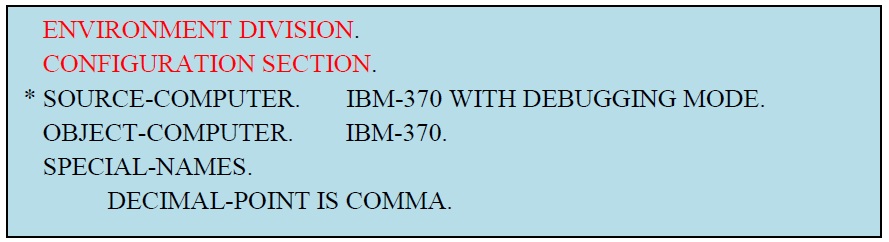 section configuration appelé SPECIAL-NAMES dans lequel nous ne considérons que la