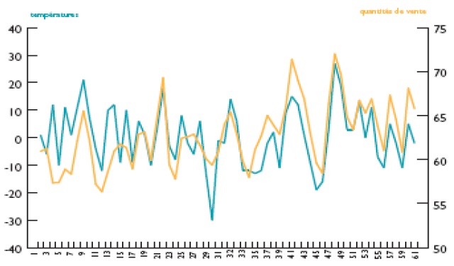 25 Graphique de météo France, analyse de la variation des ventes de bières et de la température, www.meteofrance.com, voir également l’annexe 2.