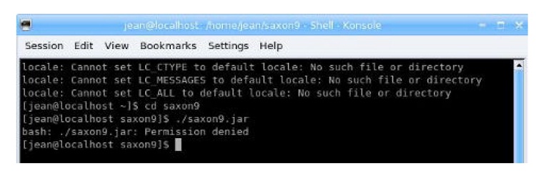 Au lancement, Saxon9 a proposé ceci: « ./saxon9.jar: Permission denied »