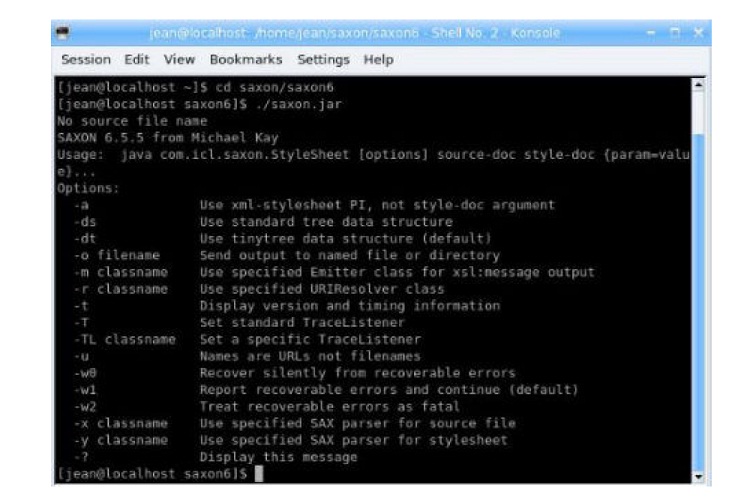 Saxon6 s’ouvre, et propose une interface … en ligne de commande.