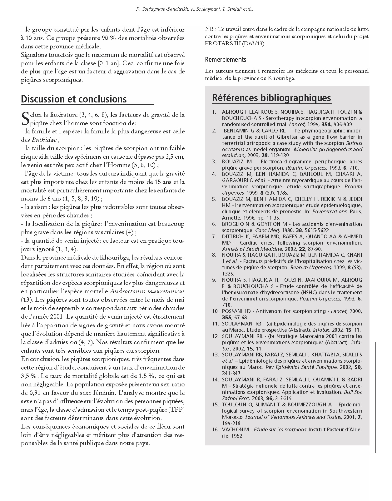 Page suivante : Profil épidémiologique des piqûres et des envenimations scorpioniques au Maroc : Analyse du relevé mensuel (2001 à 2003)