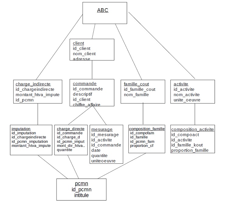 Elles sont descendantes de « ABC », sauf la table « commande » qui est enfant de « client ».